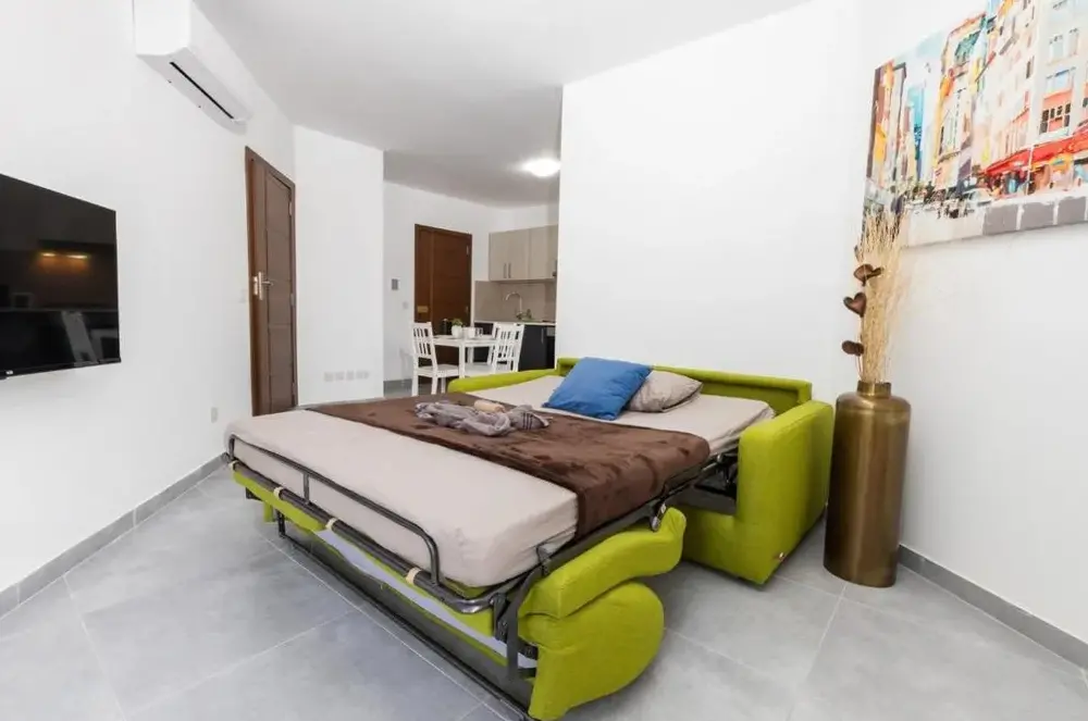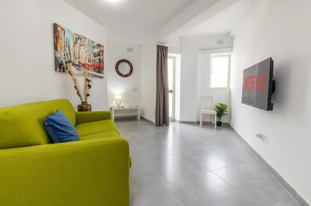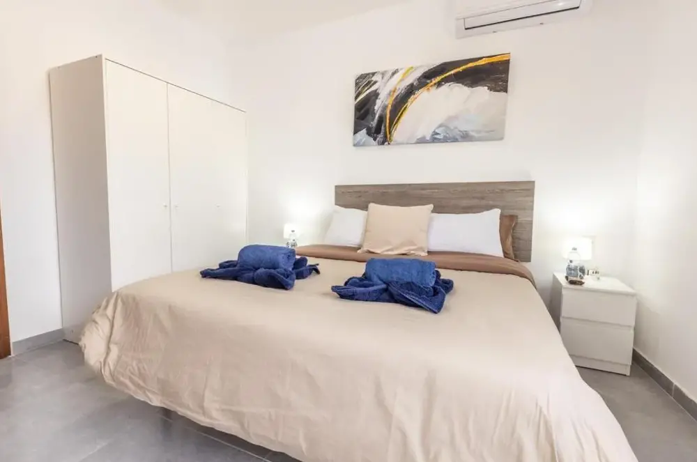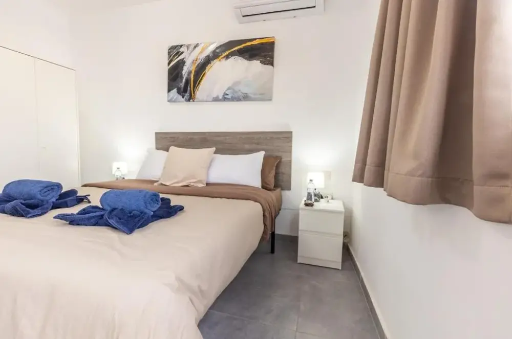 Comfortabel leven: Luigi 1 slaapkamer in San Pawl Il-Baħar biedt een appartement met één slaapkamer met een woonkamer en een balkon. Het pand omvat airconditioning, een wasmachine, een volledig uitgeruste keuken en een tv. Moderne voorzieningen: gasten genieten van gratis wifi en zorgen voor connectiviteit tijdens hun verblijf. Het appartement is huisdiervriendelijke, gastvrije reizigers met huisdieren. Handige locatie: het appartement ligt op 11 km van de internationale luchthaven van Malta en ligt op een korte wandeling van Bugibba -neerstort strand (9 minuten) en nabij attracties zoals Malta National Aquarium (1,2 km) en Popeye Village (6,2 km).